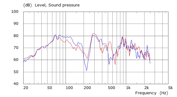 Simulated and Experimental Results to 2.5kHz for Mid-Rear Seat (individual ear responses - red = right ear)