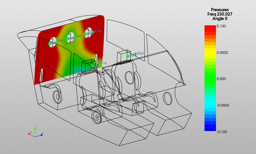 Animated Pressure Contours: The animation illustrates the complexity of the pressure field surrounding the mid-rear passenger which is dependent on the boundary impedance