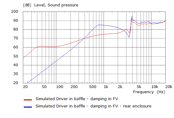Starting with a driver without damping in the frame vents, below is the effect of adding a rear enclosure and sampling SPL as a baffled system