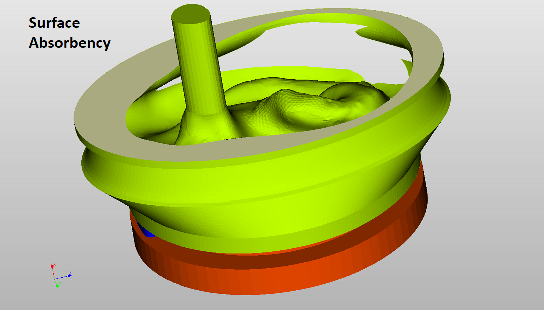 Modelling the additional effect of a leaky front volume that surrounds the imposed ear by applying surface absorbency to the region that surrounds the ear (in beige).