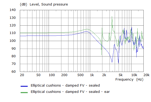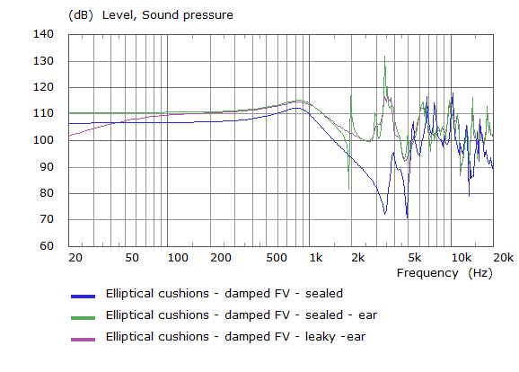 The graph below hows the comparison between the empty front volume and with the ear added as a solid entity and the mic point situated at eardrum.