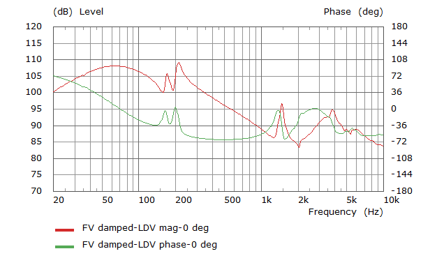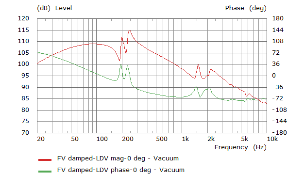 Velocity measurements below show the difference in diaphragm mobility (measured at the top of the voice coil) under normal air-loaded conditions, and then when the air is removed from the chamber.
